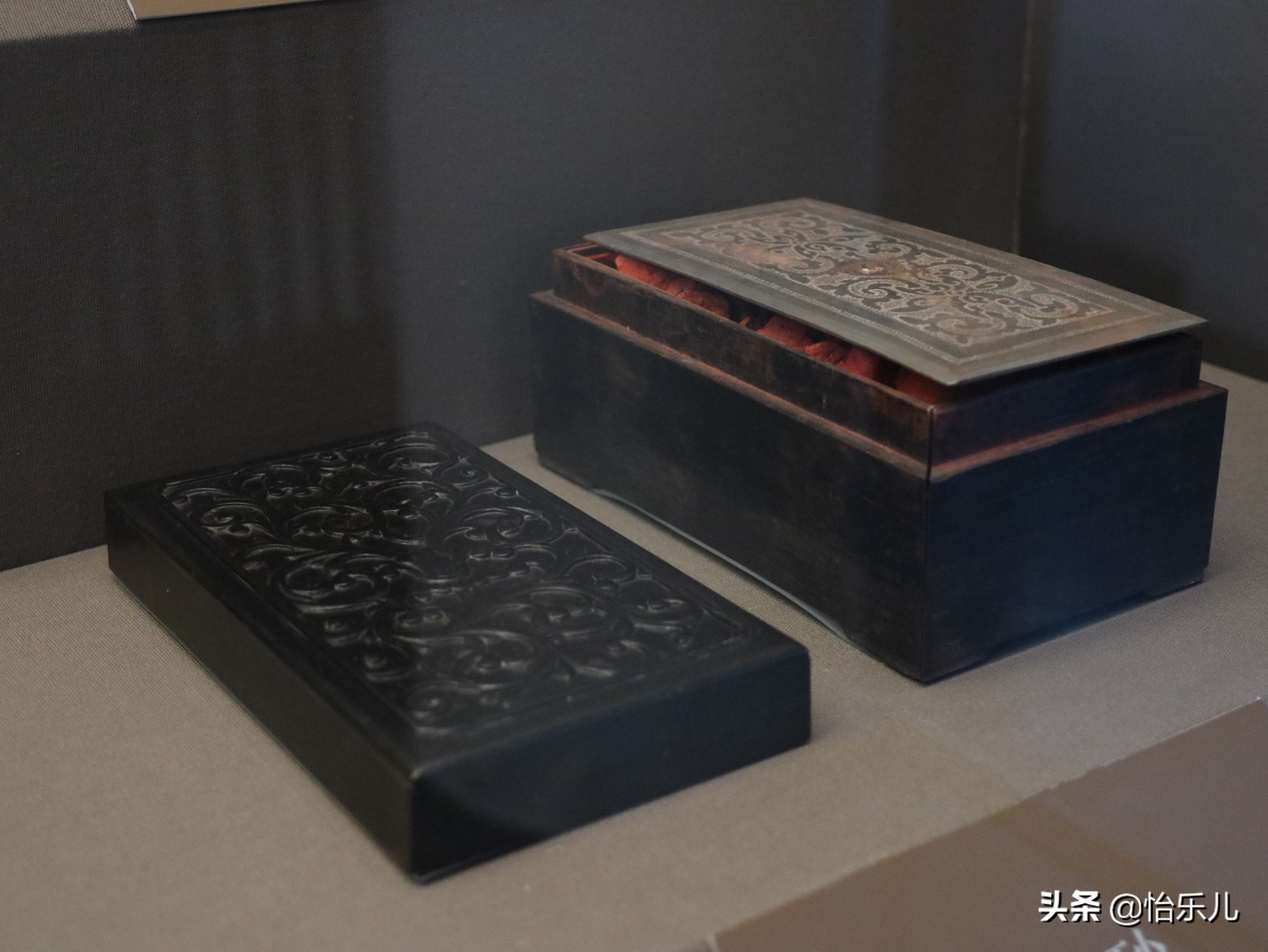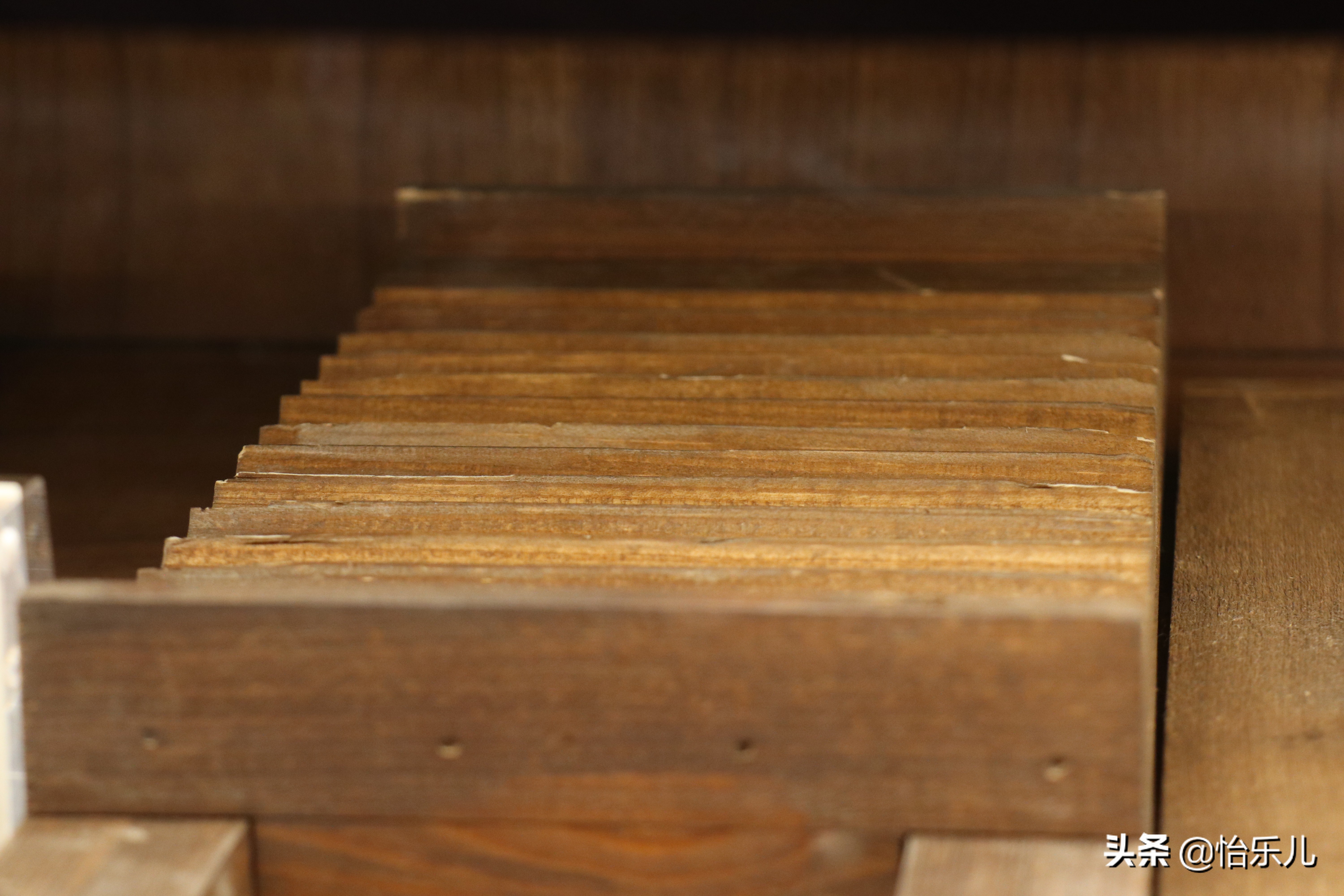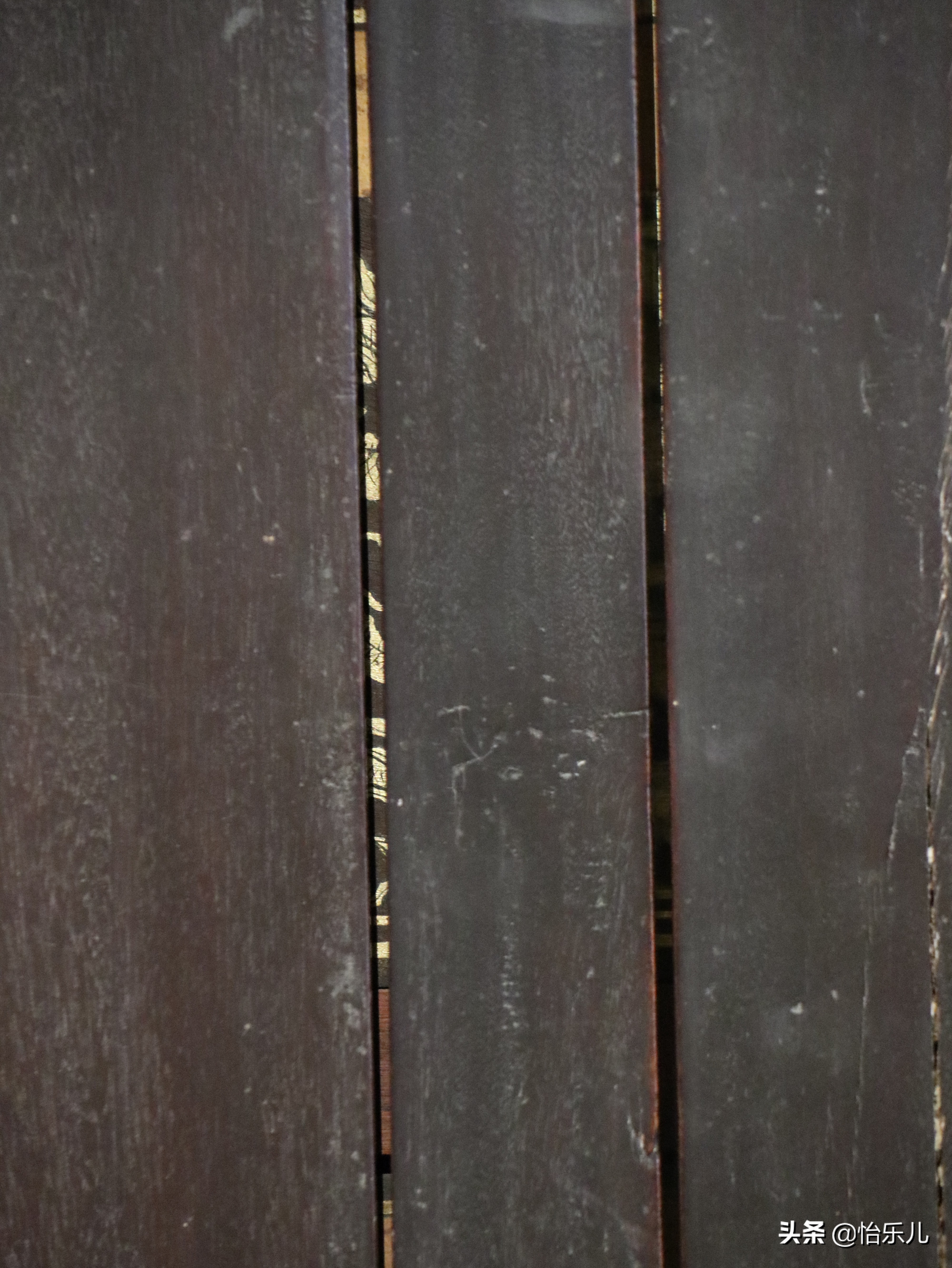 透过门板缝隙可见里面描金抽屉