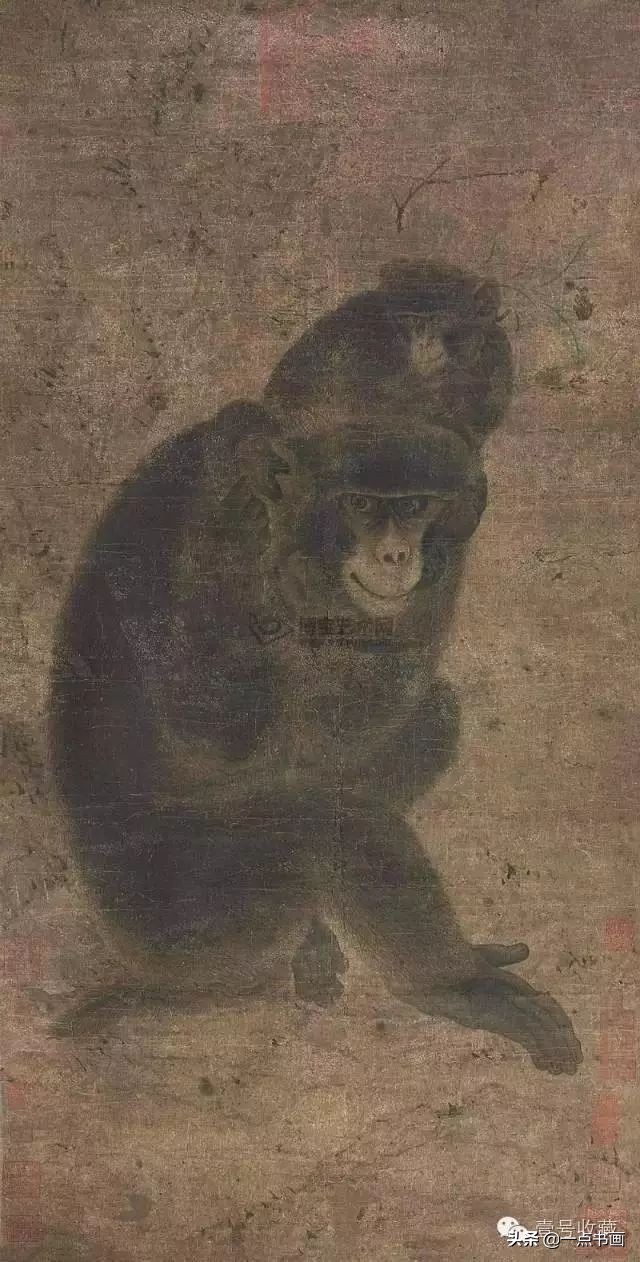 简介:图绘一母猴呈侧蹲式扭首坐立,闭嘴抿鼻双眸炯视,神态安详而严肃,似在眺望无限之远方,流露出一种超然而清淡的超逸之感。子猴窜于母猴背上扭头张望,右手欲扶摸母猴脸部,而母猴右手则紧拽小猴尾巴绕压住子猴小手,母猴左手回曲向后似应托举小猴臀部。构图布局之奇绝,毛色梳渲之鲜润,形象刻画之准确,神态表现之生动,显示出画家的颇具匠心和精湛技艺。