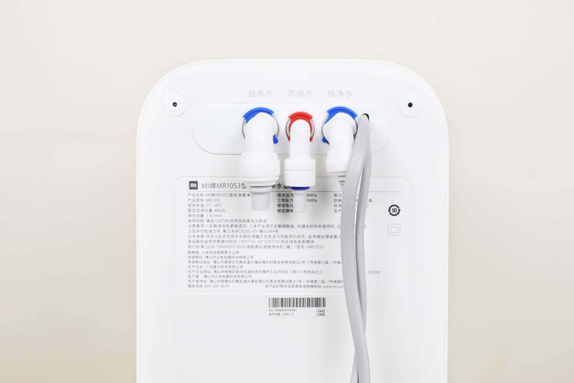 前文提到过,小米净水器H1000G的纯废水比3:1,净水率≥75%,超过了国家一级水效(≥60%)。我们来做一个小计算,假设日用纯水量10L,年用水量约10*365天=3650L,纯废水比2:1的净水器产生废水约1825L,而纯废水比3:1的小米H1000G产生废水约1216L,比纯废水比2:1的净水器节约609L水。