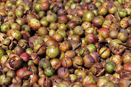 把它采摘回去晒干了,去壳以后就没多少了。而且还要在加工榨油,一般油茶籽的含油量在20-30%左右,而一亩地的油茶树能榨油也就是10-40斤,普遍都是一二十斤而已,算下来一亩地的收入还不如其他的经济作物。