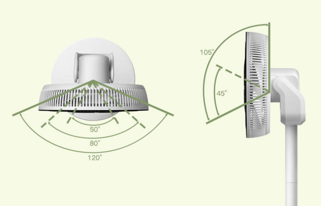 先解释一下摇头记忆:风扇左右摇头的角度分别是50°、80°、120°;上下摇头的角度是45°、105°。