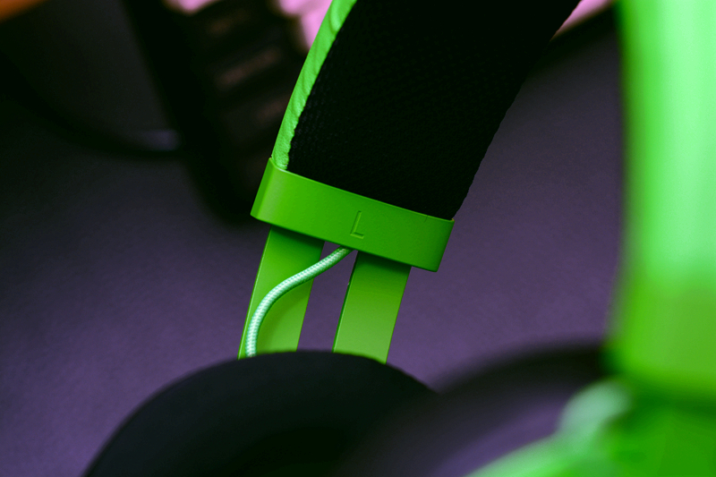 ▲北海巨妖竞技版和专业版外观上十分相似,都是单头梁、绿色框架、黑色耳罩。线材和麦克风都在左侧,由于耳机是带线控的,所有耳罩上是没有音量、麦克风等开关的,线控要方便很多。